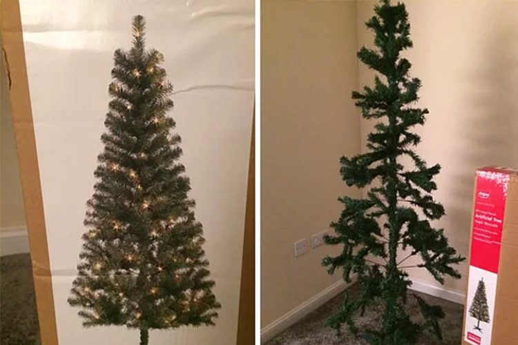 After this family opened their Christmas tree box, they quickly realized they should have just gone to a tree farm. Not only did it not include the lights seen on the box, but it also looked more like a dead tree than a perfect live one. This tree took a severe beating before arriving on their doorstep!