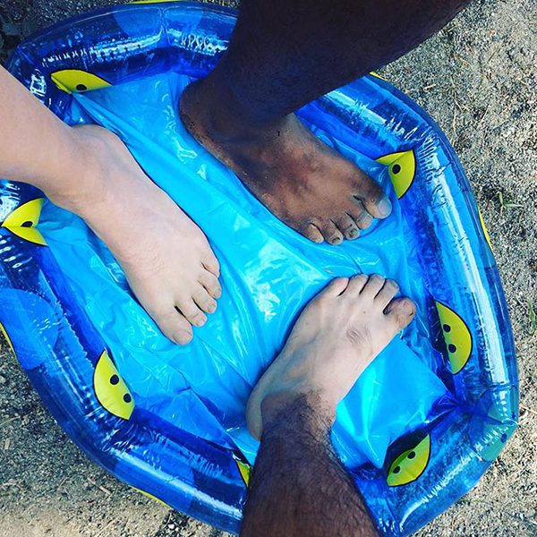 How these three friends are ever supposed to fit in this kids’ pool is beyond anyone’s guess. Perhaps they can take turns submerging both their feet while the others die of both boredom and heat.