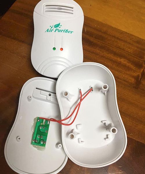 As you can see in the photo, there’s nothing actually inside of this “air purifier.” Its nothing but a couple of wires that light up the lights – that do nothing! This is the worst type of scam because not only did someone lose money, but it could also lead to someone becoming sick!
